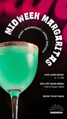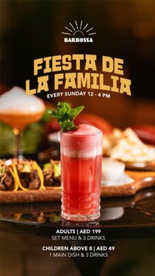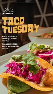 Enjoy two hours of unlimited tacos and margaritas. 180 AED for alcoholic drinks package and 130 AED for non-alcoholic drinks.